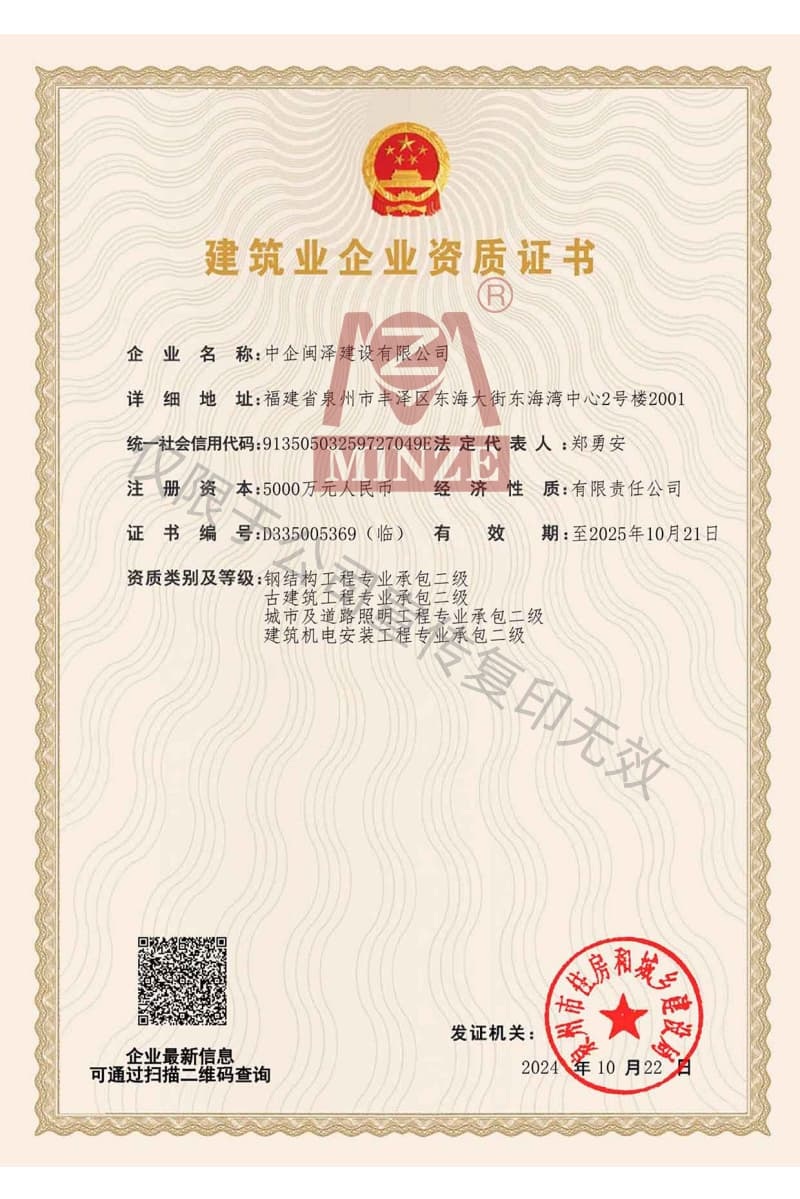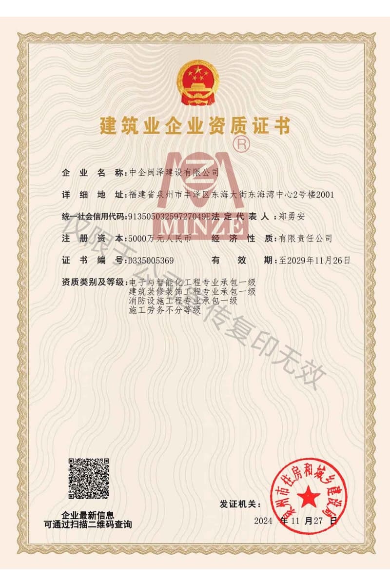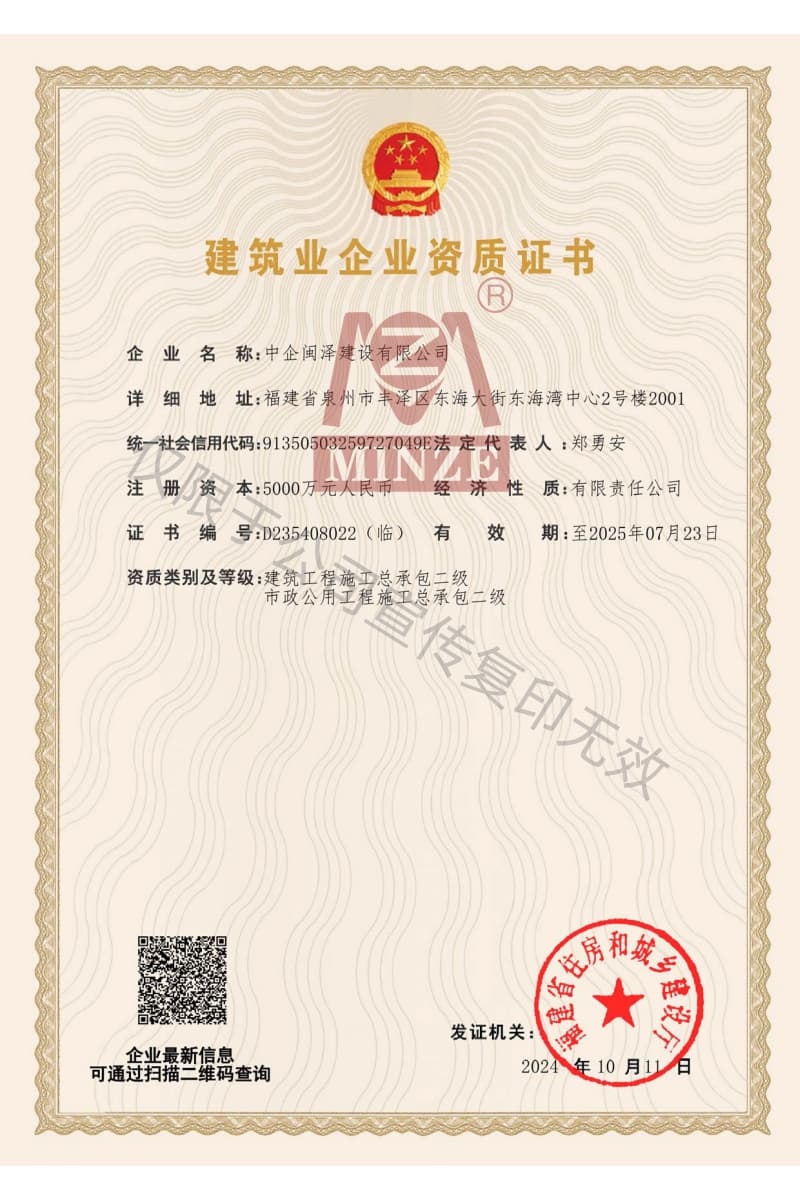 施工總承包資質(zhì)證書