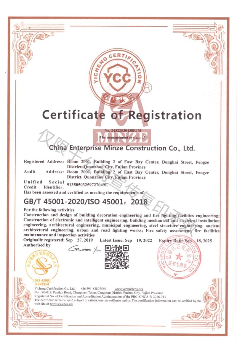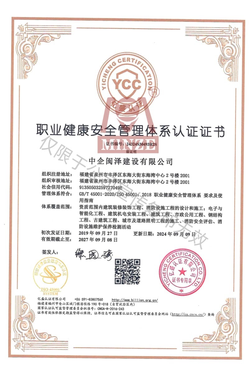 職業(yè)健康安全管理體系認(rèn)證證書