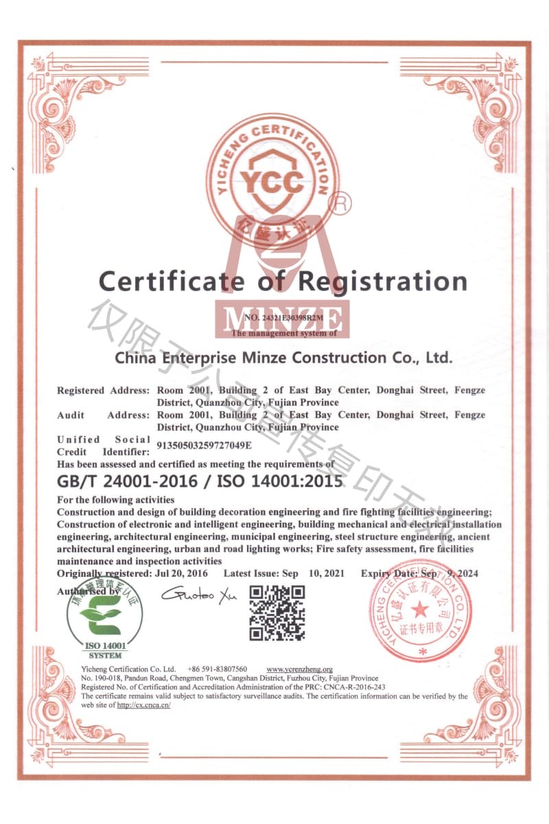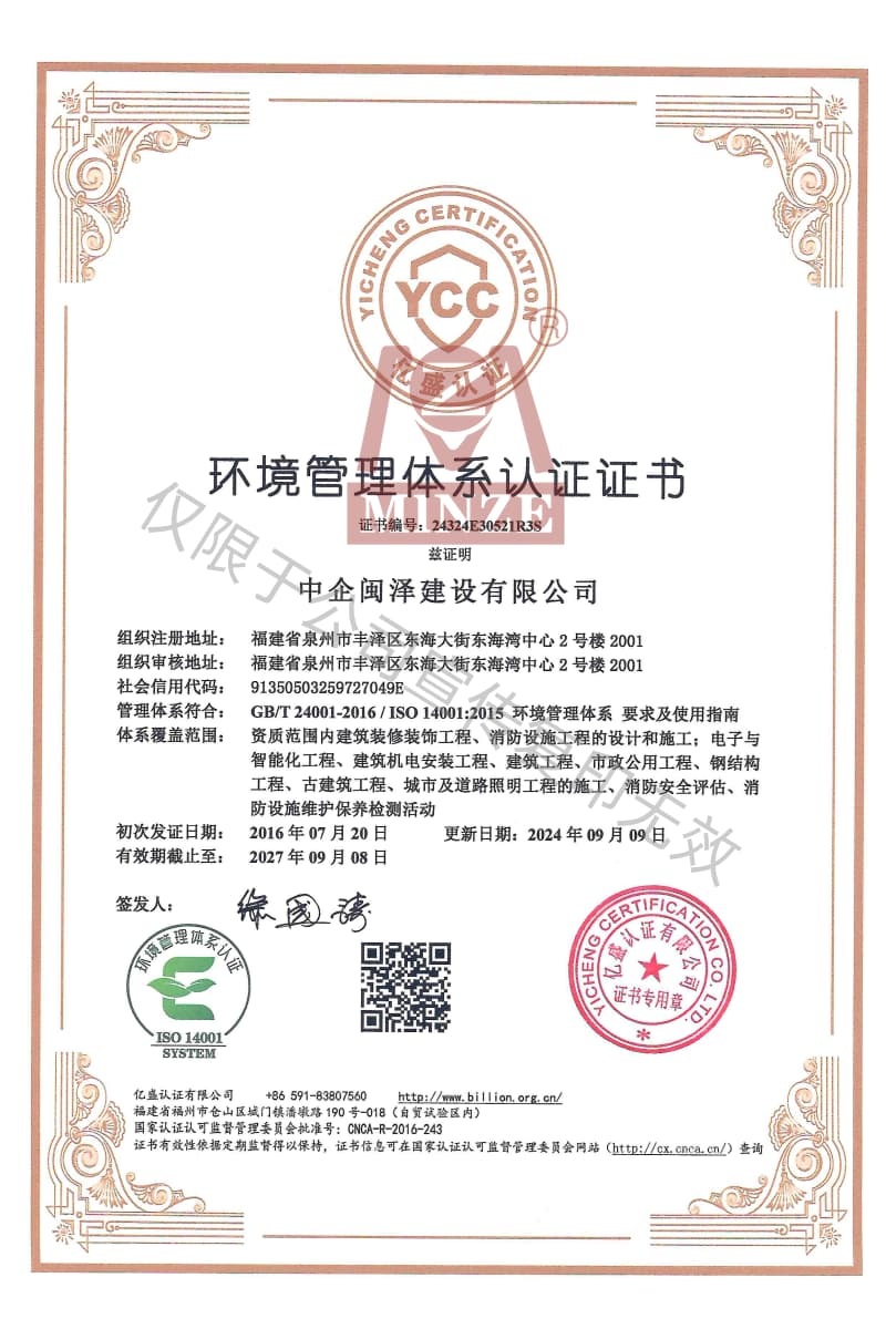 環(huán)境管理體系認(rèn)證證書